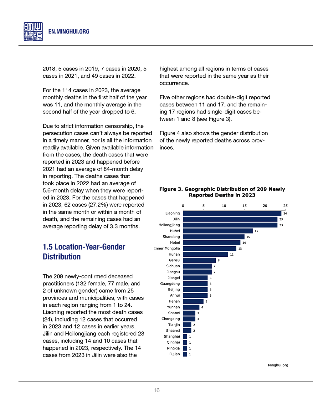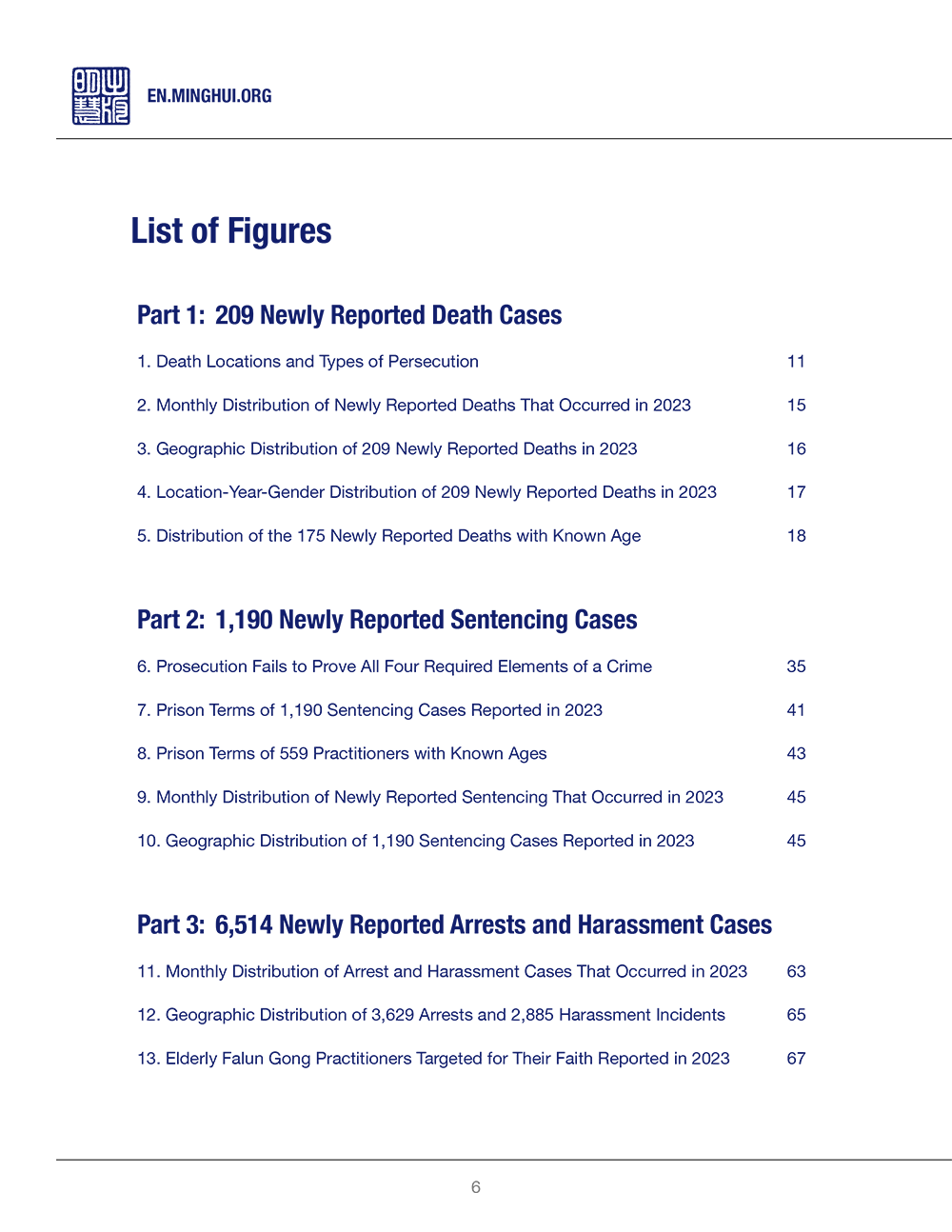 This annual report by Minghui.org presents the latest developments in the persecution of Falun Gong by the Chinese communist regime. In 2023, Minghui.org reported the deaths of 209 Falun Gong practitioners, bringing the total number of documented deaths as a result of the persecution to over 5,000. In addition, a total of 1,190 sentencing cases were reported, as well as 6,514 cases of arrests and official harassment of Falun Gong practitioners for their faith.
